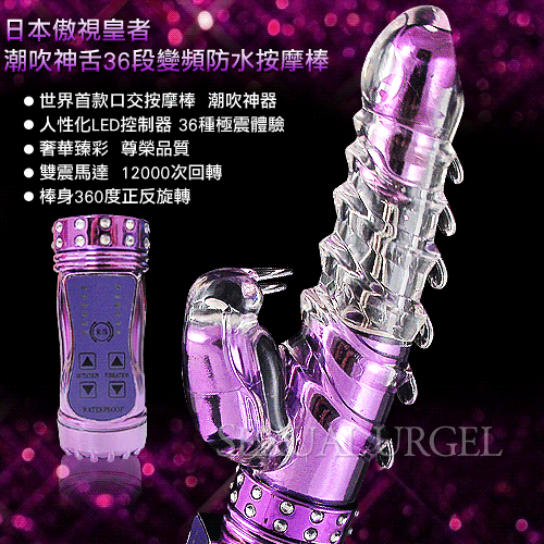 日本傲視皇者-潮吹神舌36段變頻防水按摩棒-貴族炫紫