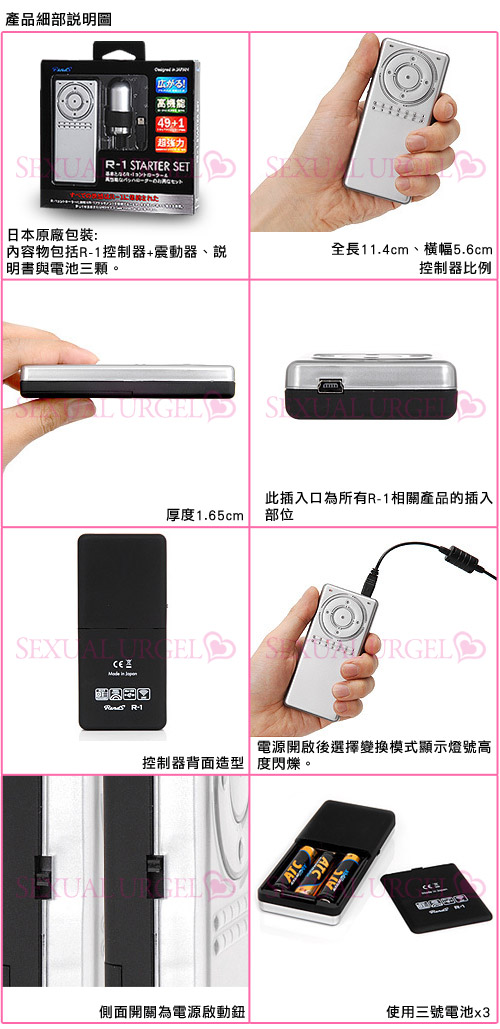 .內容物包含R-1控制器+震動器、說明書與電池三顆