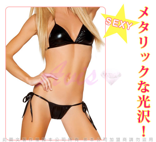 .主商品:虐戀精品CICILY-豪乳爆爆 塗膠仿皮 兩件式比基尼-黑*1
