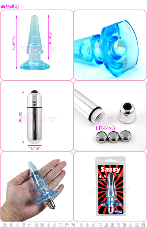 .主商品:美國Passion Me-Sassy 震動水晶後庭椎-藍 *1