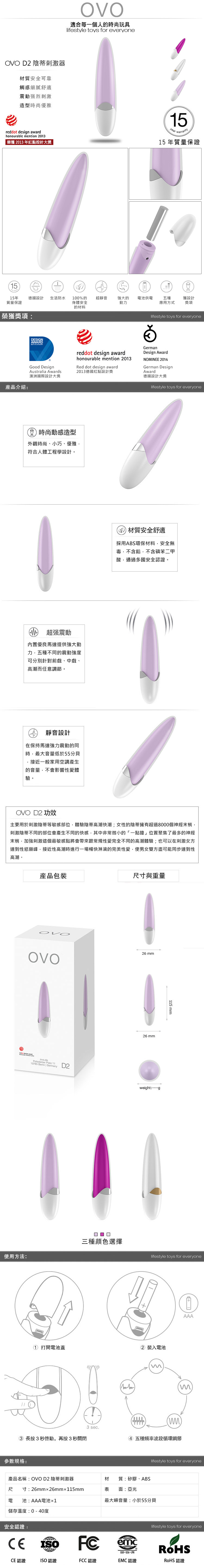 .主商品:德國OVO-D2 火箭型 5段變頻 迷你震動 G點按摩棒-粉色X1
