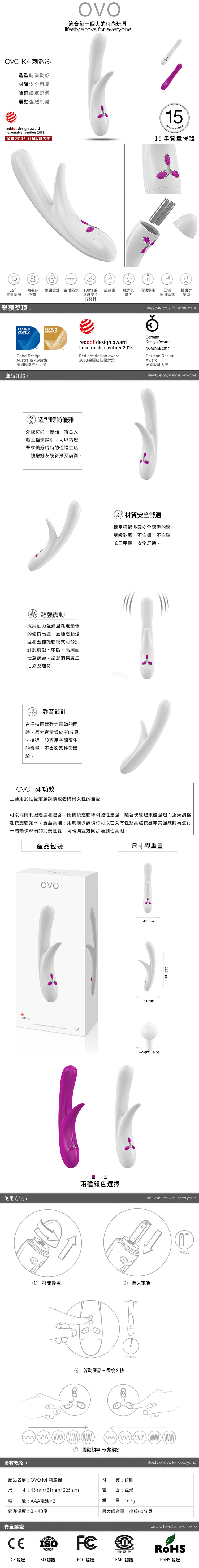 .主商品:德國OVO-K4 喬伊斯 5段變頻 多功能 雙叉 震動按摩棒-白色X1