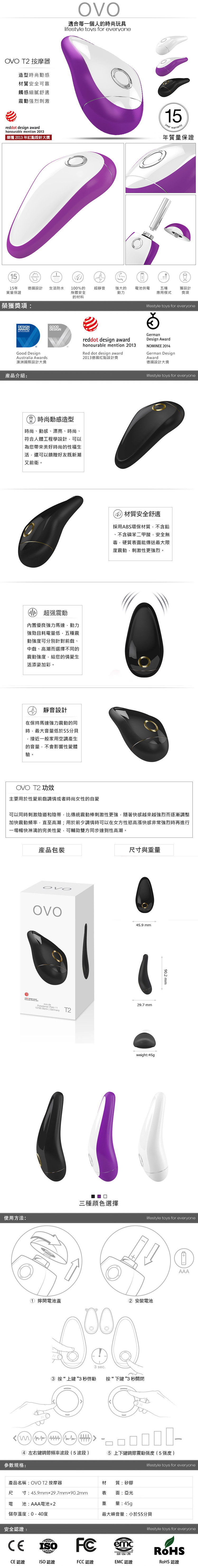 .主商品:德國OVO-T2 小水滴 5段變頻 精品 震動按摩器-白紫色X1