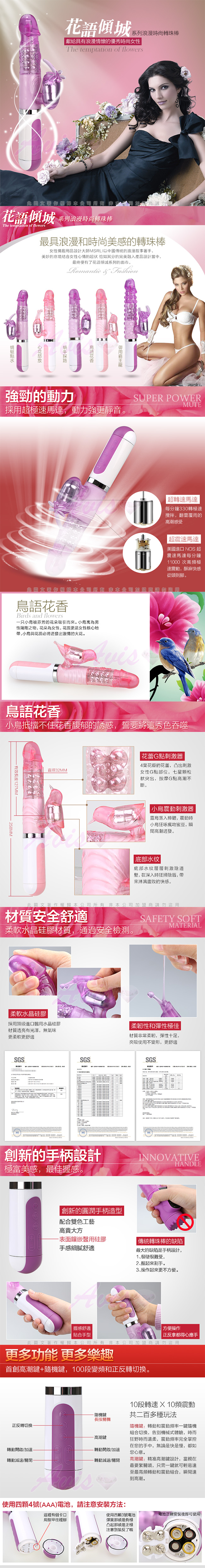 .商品:花語傾城系列-10x10段變頻防水轉珠G點按摩棒-鳥語花香*1
