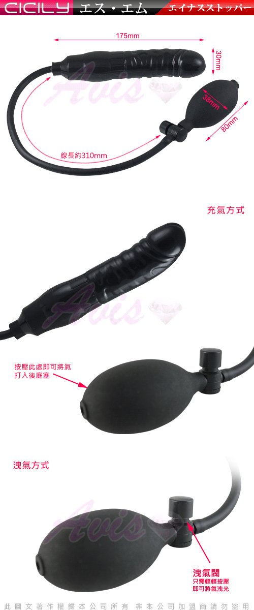 .商品內容:虐戀精品CICILY-膨脹大老二-充氣膨脹老二造型後庭開發器X1