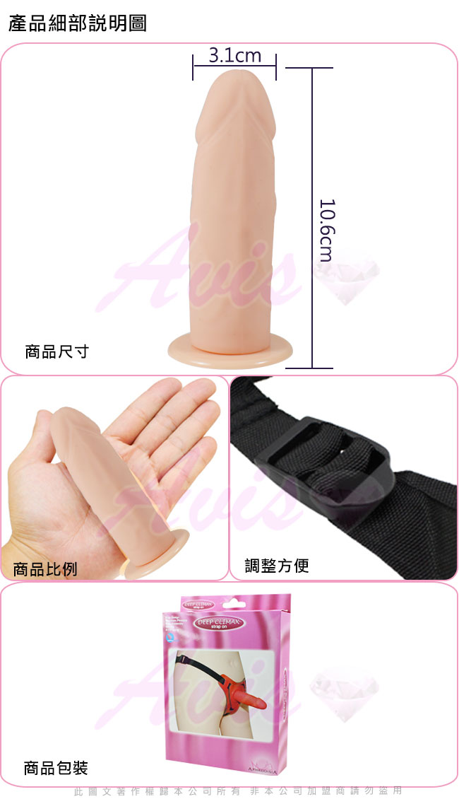 .商品名稱:APHRODISIA 活潑小弟弟 穿戴逼真型按摩棒-膚(可拆下單獨使用) *1