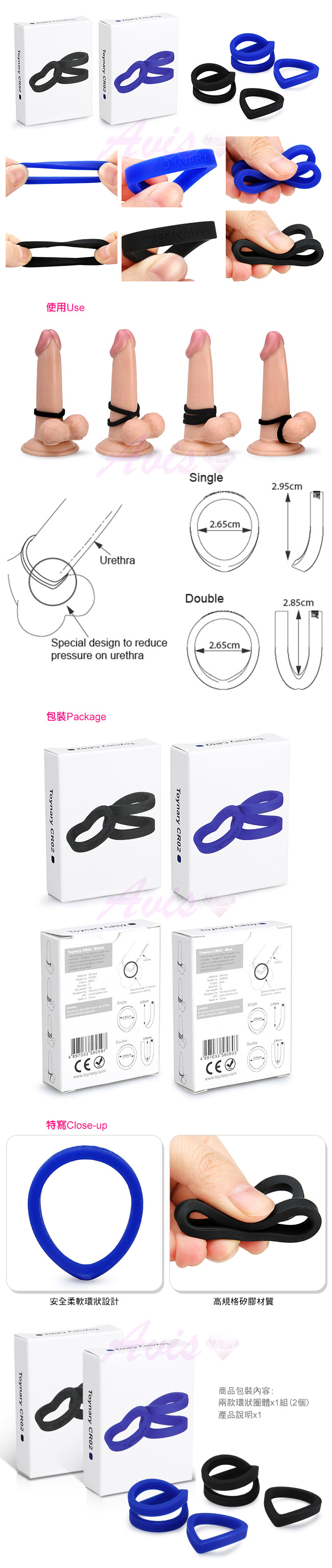 特樂爾CR02猛男吊環採用醫用矽膠製造,物料安全,有彈性,順滑和耐用。一套有兩個猛男吊環,令尾聲時感覺更舒適。特樂爾CR02有多種用法,可以單個使用或兩個同時使用,套在陰莖根部或套在陰莖及睪丸上等等,增強效果。