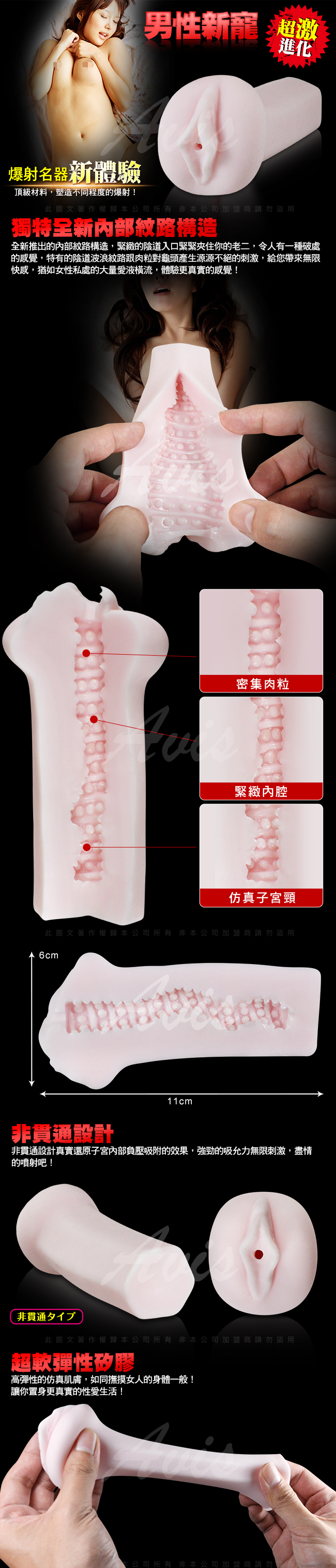 進入時首先是一條深喉紋路,先把你的龜頭吸允然後進入陰道直達子宮,有眾多肉粒環繞根子宮核來刺激陰莖,每一粒都發揮增加快感的奇效