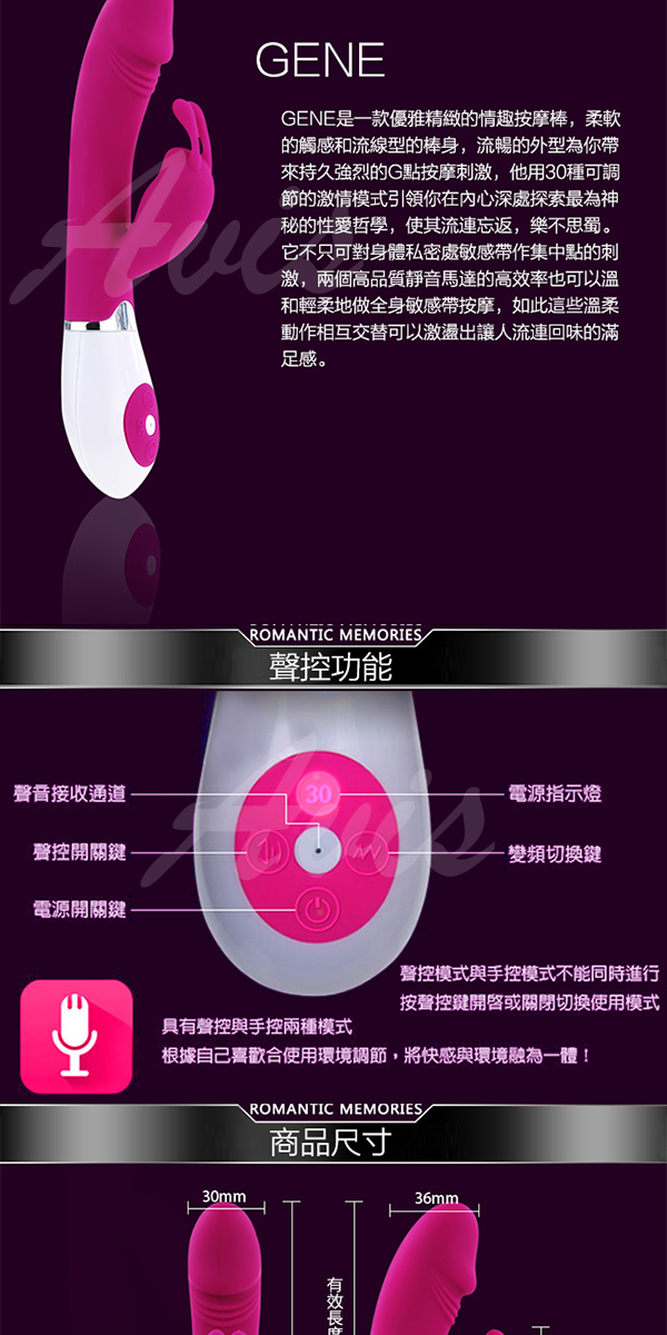 .主商品:GENE愛的音符 聲控+手動30段變頻智能按摩棒 x1