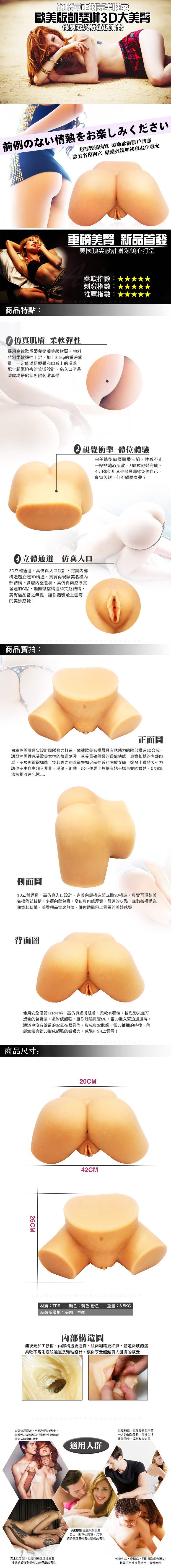 .商品名稱:歐美名模 凱瑟琳 8.5kg 性感雙穴 3D美臀自慰器