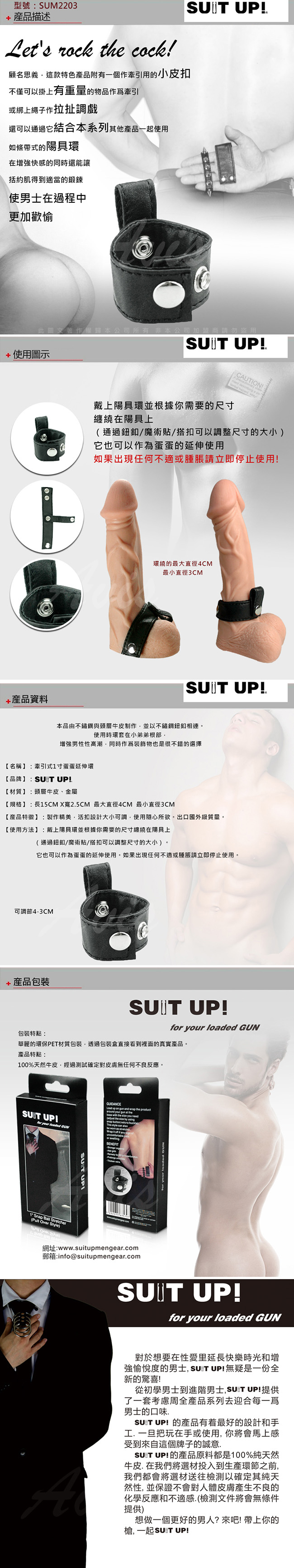 .商品內容:SUIT UP! SM情趣 牽引式一寸蛋蛋延伸環X1