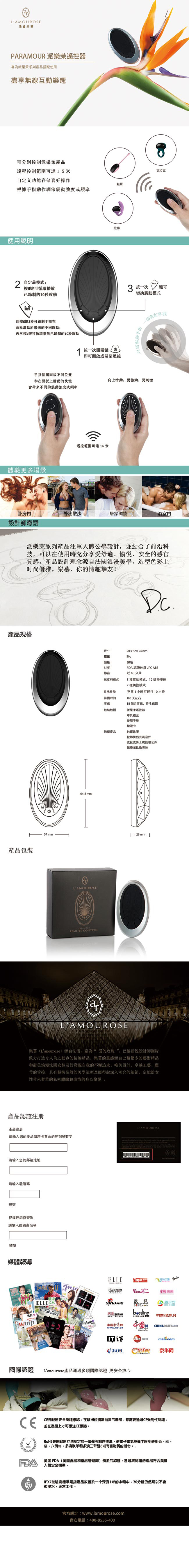 法國L`amourose Paramou 派樂茉 產品配件 無線遙控器