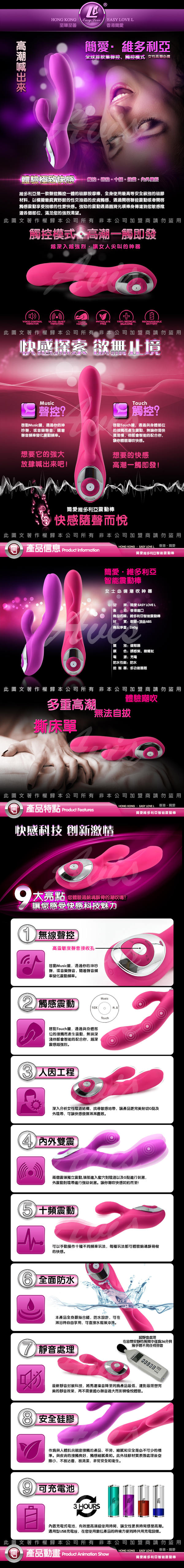 維多利亞是一款聲控觸控一體的矽膠按摩棒,全身使用最高等級的矽膠材料,