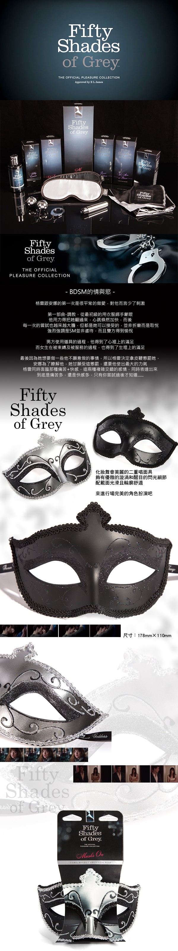 .商品內容:Fifty Shades Of Grey 格雷的五十道陰影 舞會面具 雙入組