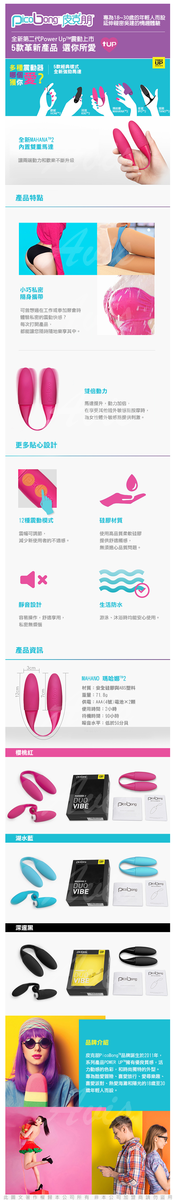 .商品名稱:瑞典PicoBong MAHANA 2瑪哈娜雙重奏二代​​ 陰蒂G點雙刺激共震按摩器