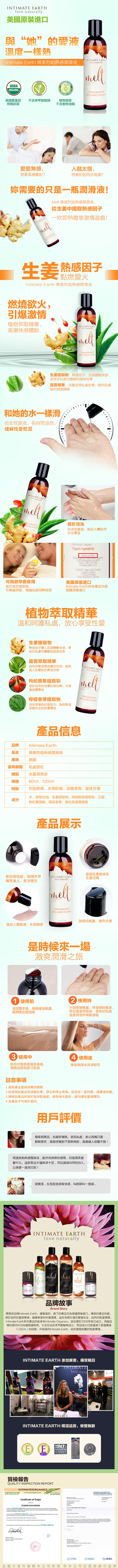 INTIMATE-EARTH的潤滑液混合物含有經過認證的的純天然蘆薈,生薑提取物,肉桂提取物,枸杞提取物,完全純天然成份。