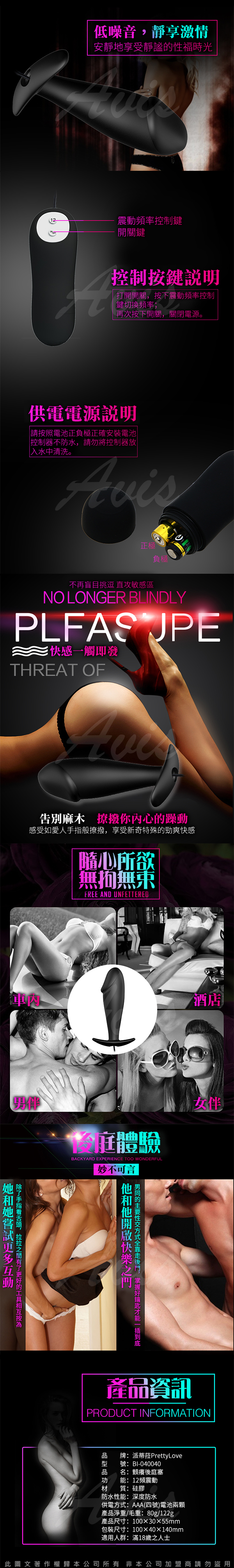 .商品名稱:PRETTY LOVE-BUTT PLUG 快樂老二 12段變頻後庭矽膠震動按摩棒