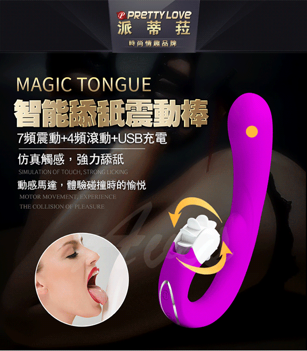 .商品內容:PRETTY LOVE MAGIC TONGUE 智能4舔x7震USB充電 魔舌G點棒 內外夾攻+震滾合擊