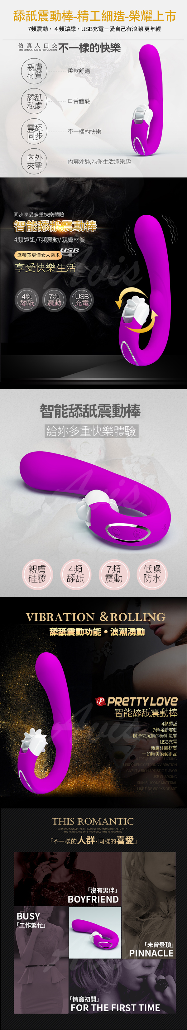 PRETTY LOVE MAGIC TONGUE 智能4舔x7震USB充電 魔舌G點棒 內外夾攻+震滾合擊