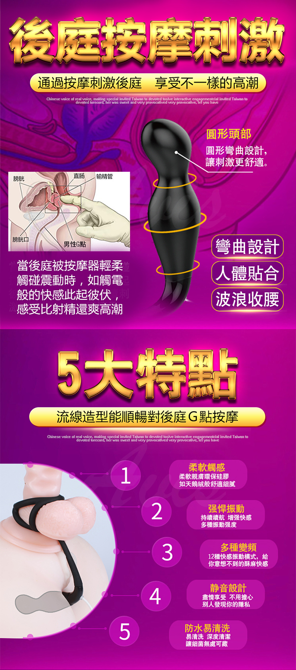 後庭按摩貼合的黃金彎曲設計輕鬆刺激您的前列線讓高潮更舒適讓您進入另一種境界。