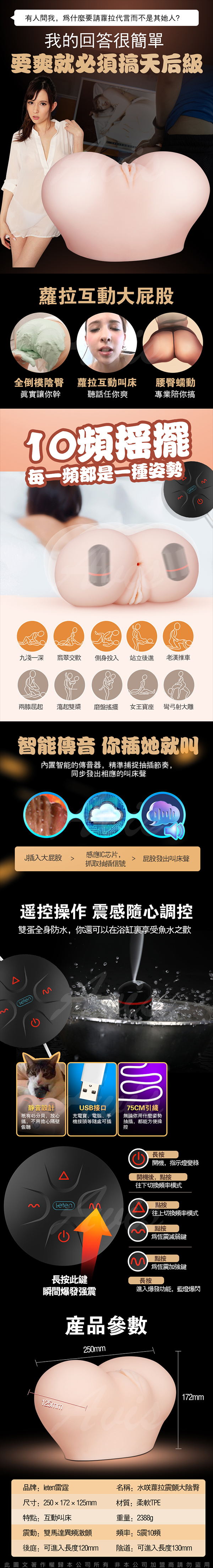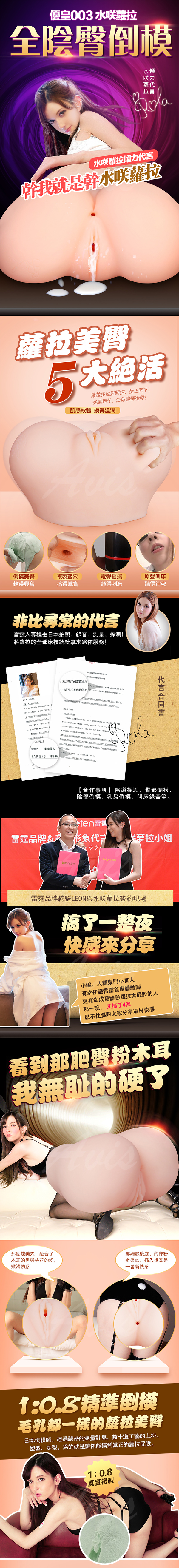 .商品名稱:香港LETEN 優皇 水咲蘿拉(瀧澤蘿拉) 1:0.8複製美尻 5x10頻雙震動+真人發音 雙穴仿真大屁股