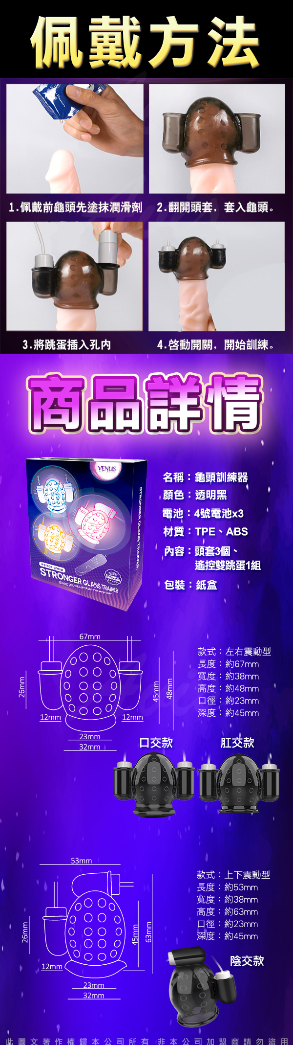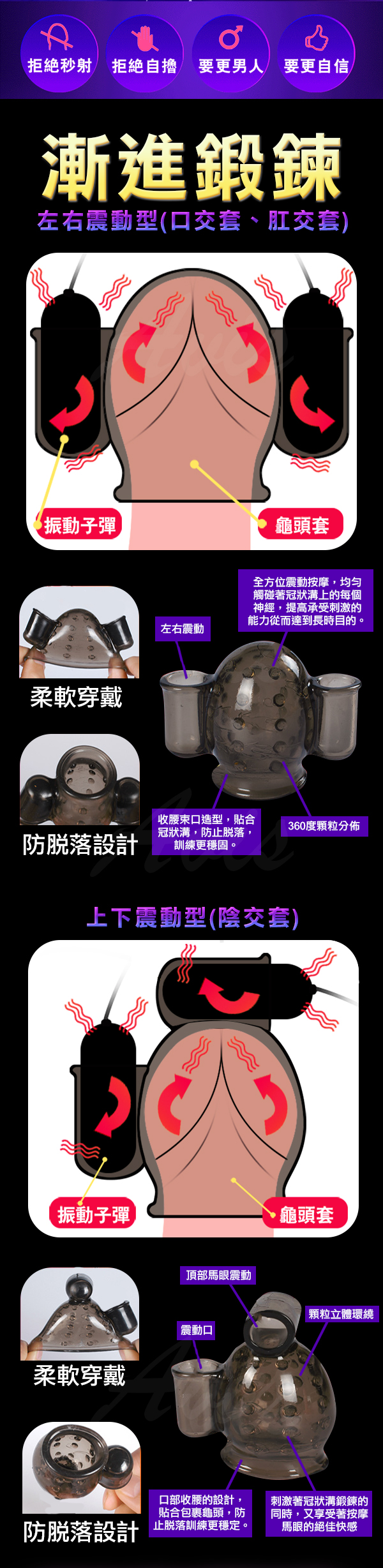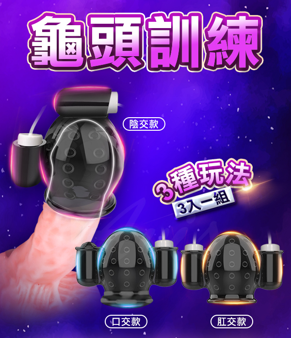 .主商品:VENUS 雙震龜頭訓練器 口交肛交陰交三入套組
