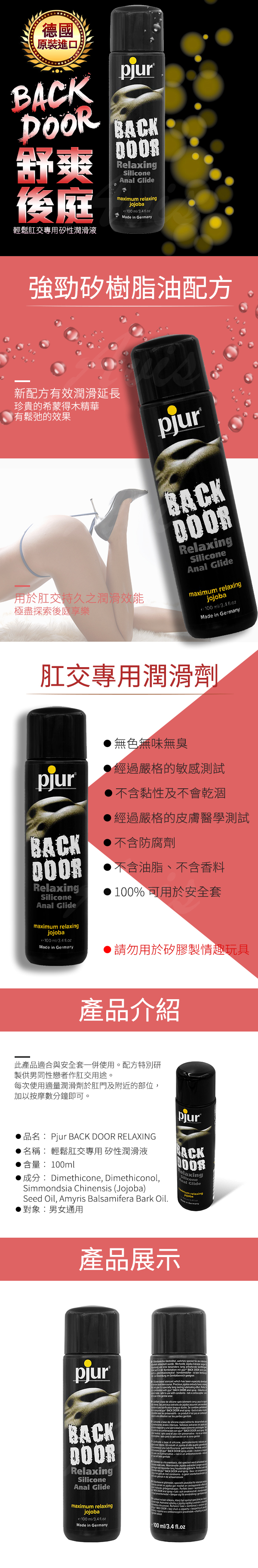 .商品名稱:德國Pjur BACK DOOR肛交專用矽性潤滑液 100ml