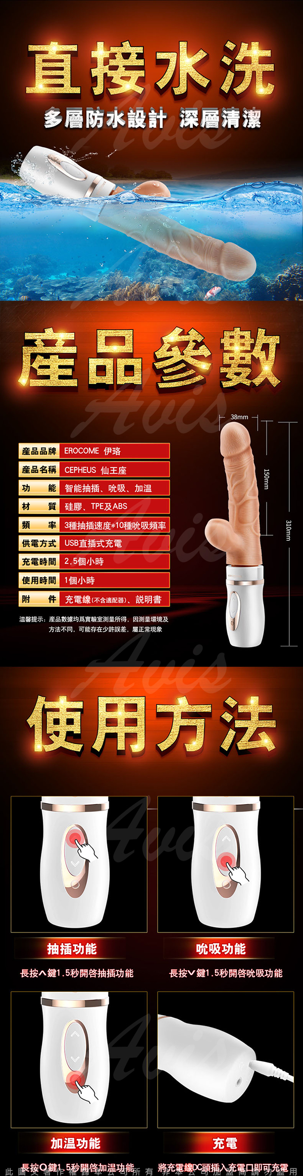 EROCOME伊珞 仙王座CEPHEUS 3x10段伸縮吸吮變頻全自動仿真加溫按摩棒