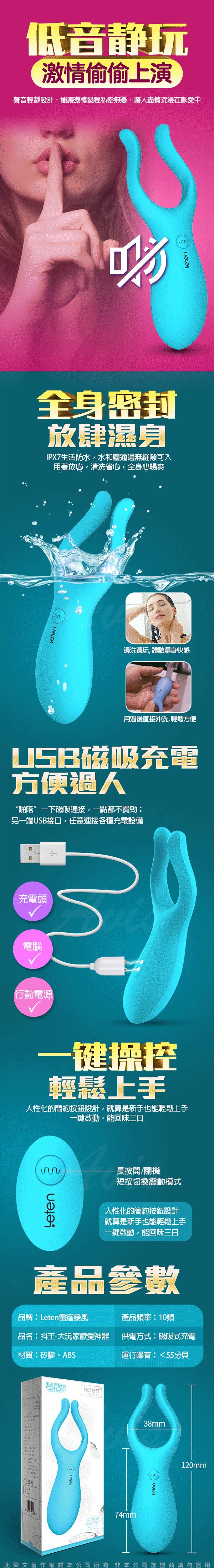 .主商品:Leten 抖王大玩家 3x7頻多功能震動調情按摩棒
