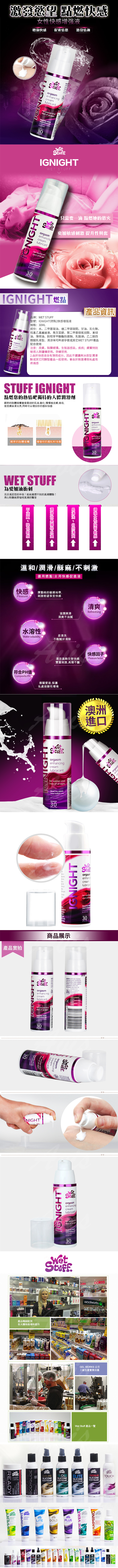 Wet Stuff-Ignight 高潮快感增強潤滑乳,是一款男女合用的房事潤滑產品。將 Ignight 塗上私處,你會感受到如觸電般的快感,一浪接一浪,為你的性愛帶來獨特的刺激享受。同時,Ignight 也是一款絲滑的潤滑劑,讓你們的每個親密互動都激情而舒適