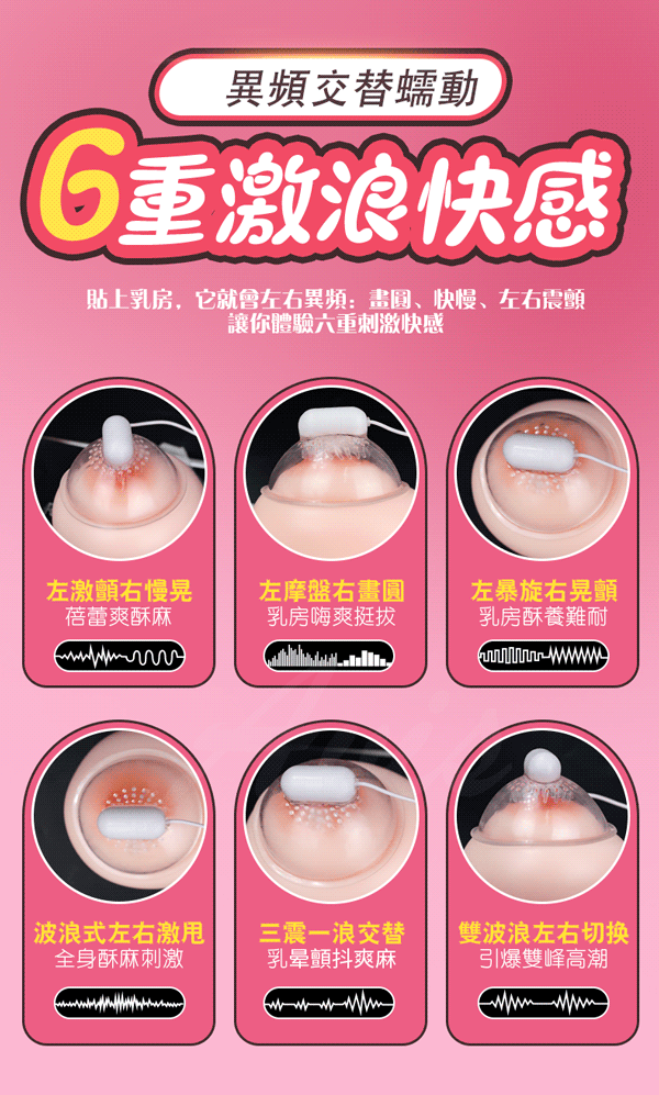 手工無法給你帶來的刺激,撩乳按摩器可以!酥酥麻麻的快感,讓人直哆嗦。乳刷360度顫刮撩撥激發的敏感神經,快感如觸電般酥癢,輕薄吸附強貼合蠕吸觸發乳房酥麻脹大!且擁有6重異頻交替蠕動,貼上乳房,它就會左右異頻:畫圓、快慢、左右震顫讓你體驗六重刺激快感喔