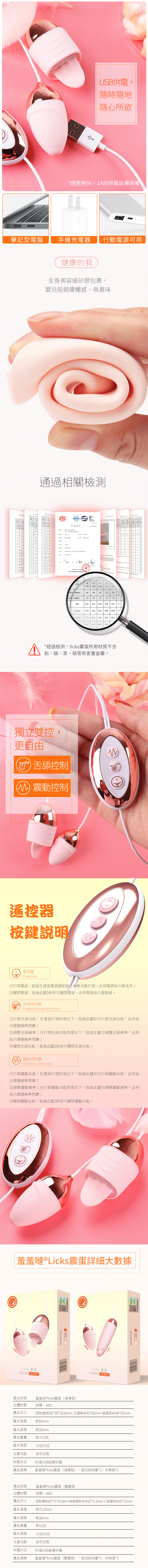 .商品名稱:香港久興-羞羞躂Licks 10段變頻舌舔 USB供電矽膠雙震蛋-淺嘗版