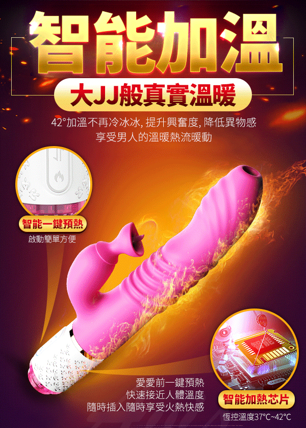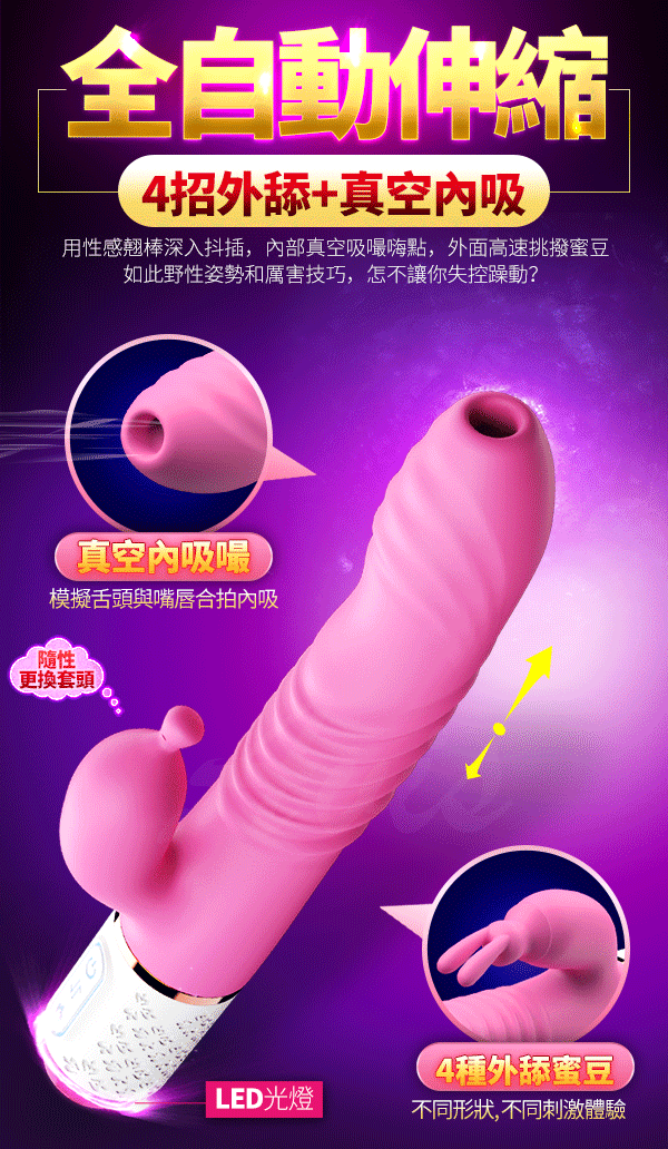 .主商品:Dibe-玉兔11代 舔震吸吮+伸縮 智能加溫 G點高潮按摩棒 附3種頭套