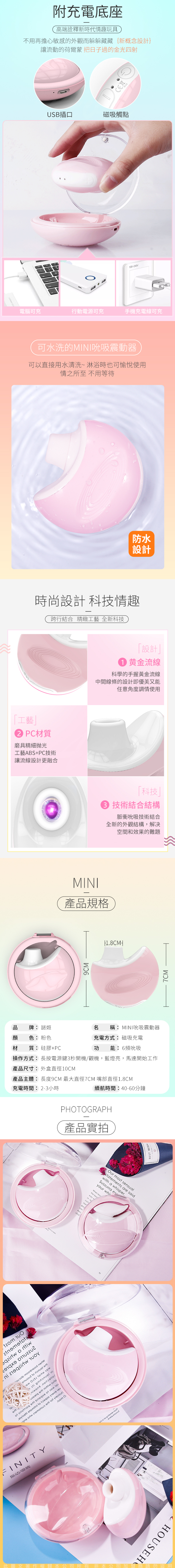 .主商品:Mini 6段變頻脈衝吮吸 粉餅盒造型 磁吸充電矽膠震動器
