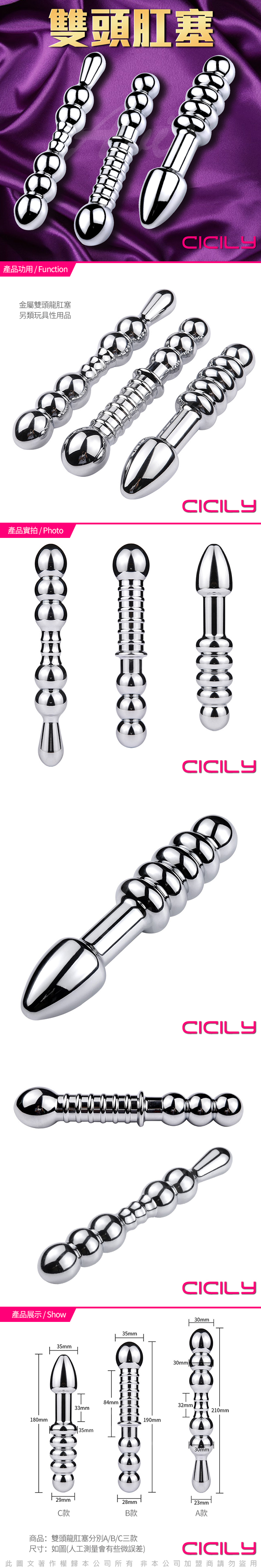 CICILY 雙頭 金屬 拉珠後庭按摩棒 C款