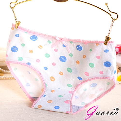 【Gaoria】純棉面料 中腰 少女可愛提臀 三角褲 米白印花粉紅邊