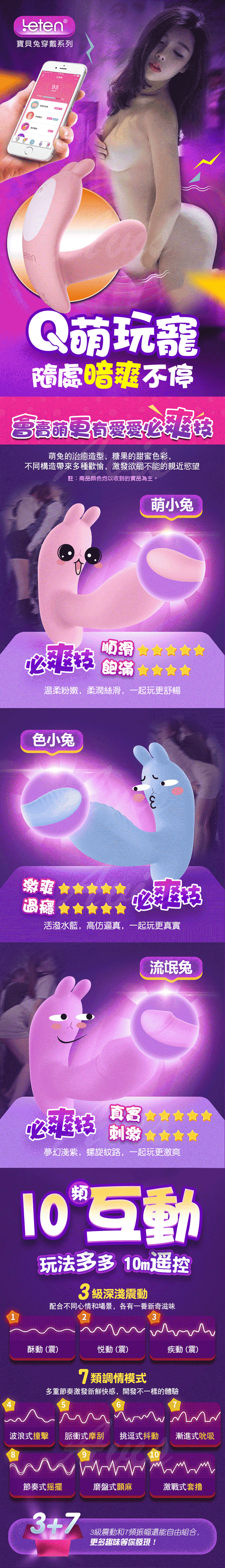 .商品名稱:LETEN Q萌玩寵 寶貝兔系列 雙震+溫控 隱形穿戴 無線遙控跳蛋 APP智能版