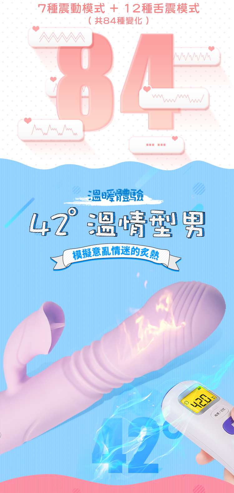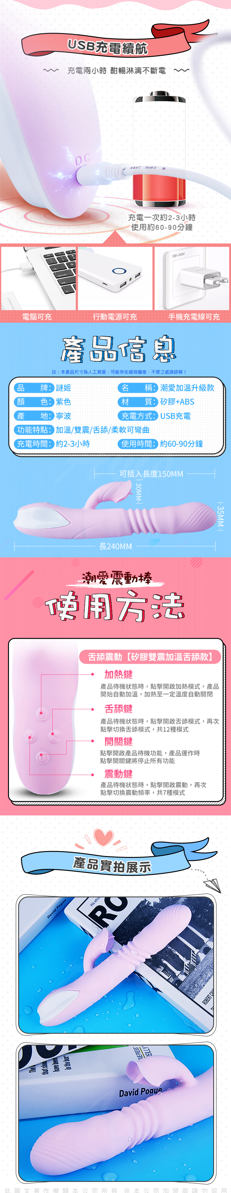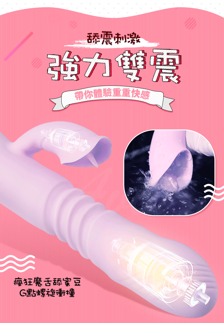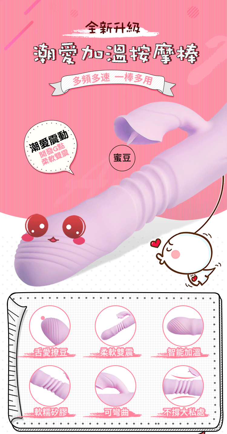 .商品名稱:潮愛 7段變頻震動舌舔智能加溫柔軟雙震按摩棒-粉紫色
