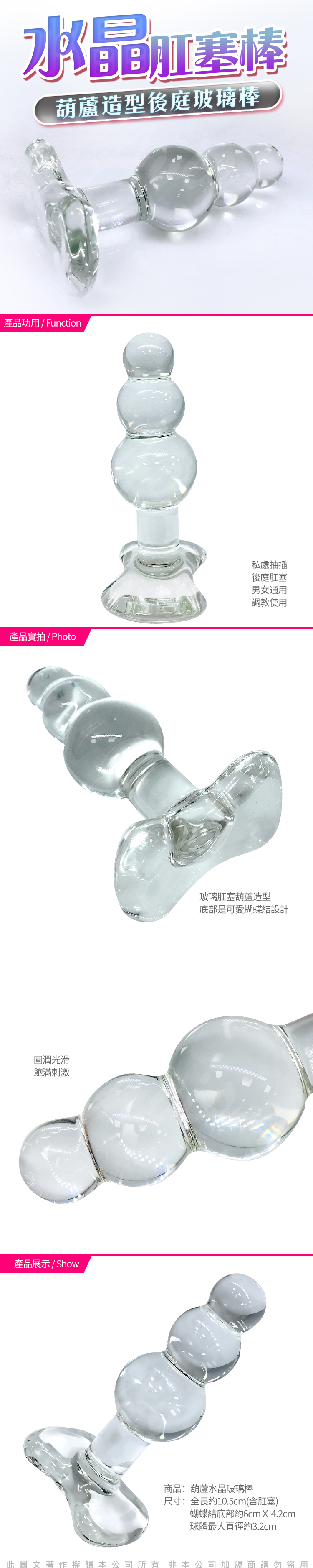 .商品內容:蝴蝶結 葫蘆造型 後庭水晶冰火玻璃棒
