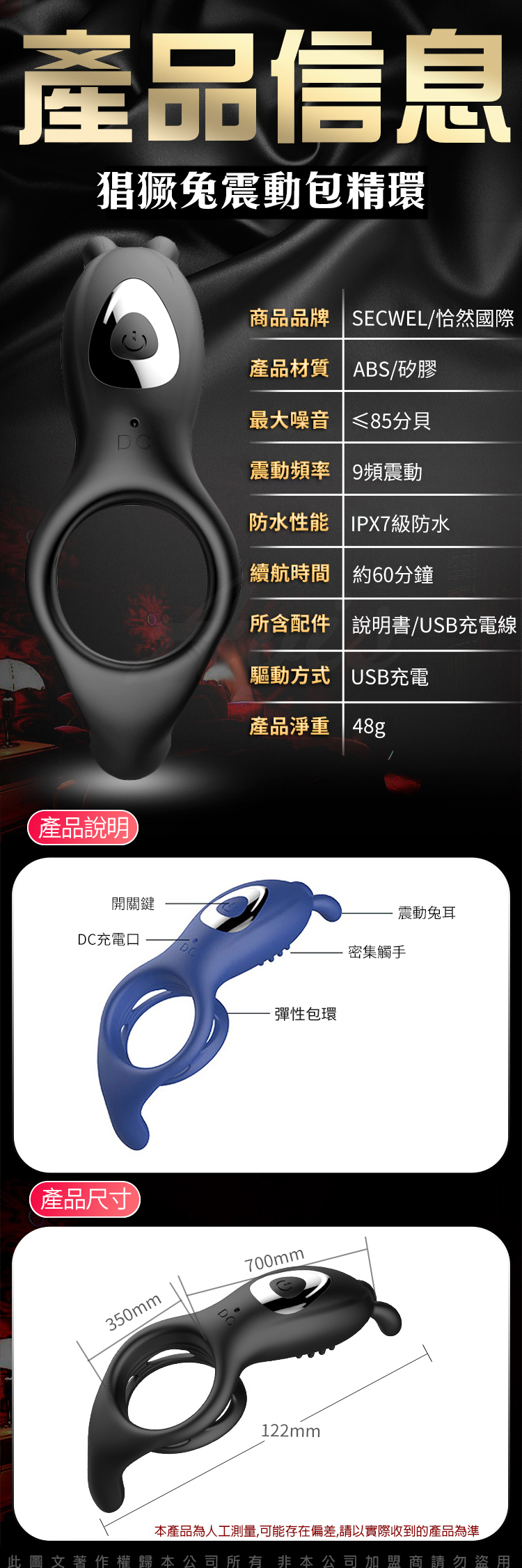 商品名稱:恰然-猖獗兔 震動鎖精環