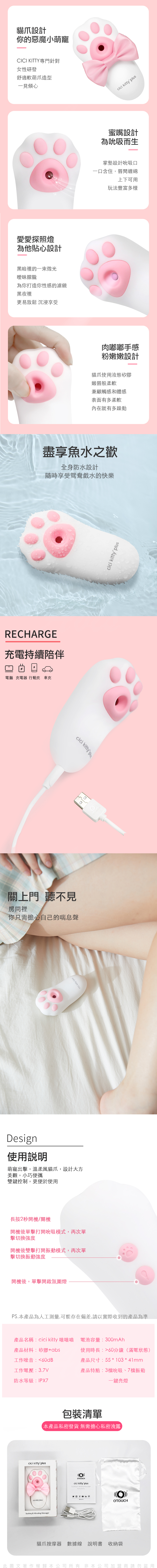 產品名稱:OTOUCH-嘻嘻喵 CICI KITTY 貓爪造型 吸吮震動按摩器
