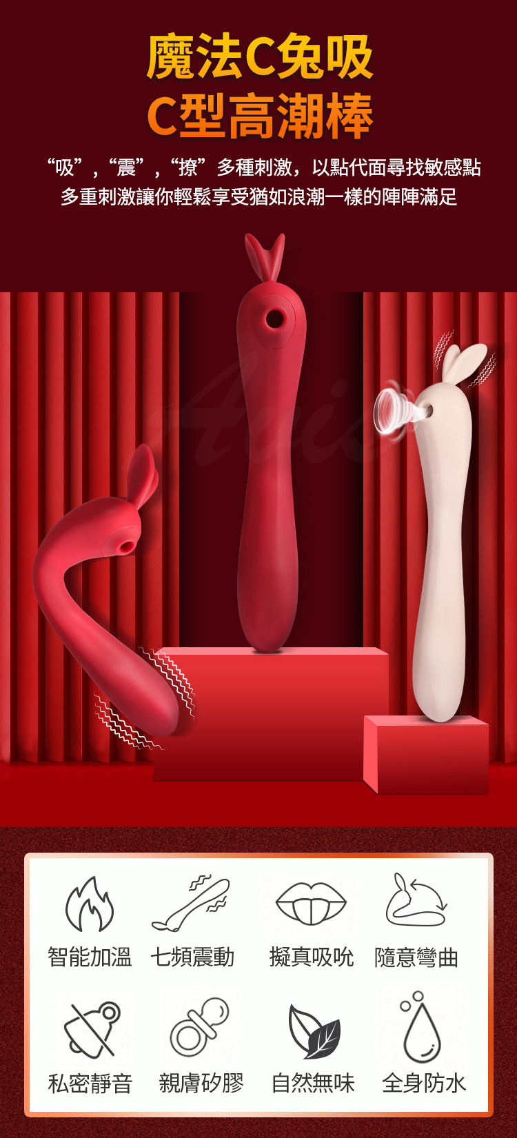 魔法兔 7段 吸吮震動 智能加溫 按摩棒-粉