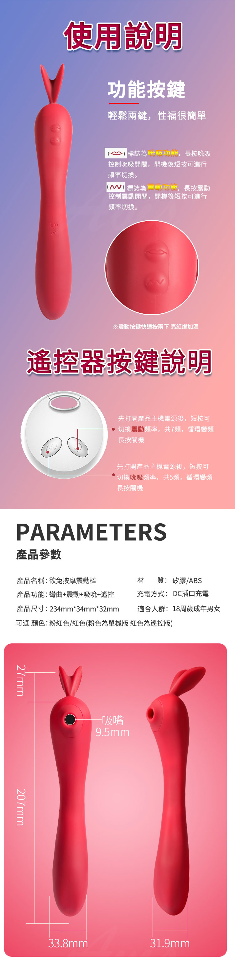 產品名稱:魔法兔 7段 吸吮震動 智能加溫 按摩棒-粉