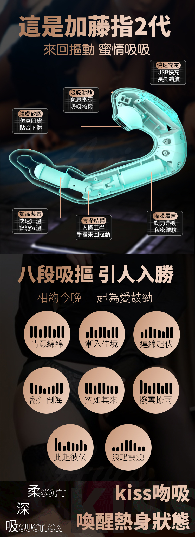 加藤指2代 8頻摳 吸吮 一鍵加溫 矽膠充電按摩棒