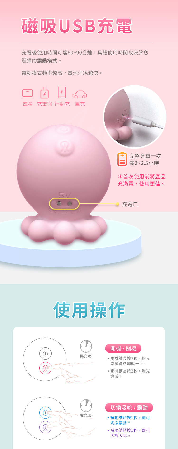 品名:二代小章魚 岸上的吸妞 9頻強勁吸吹+9頻震動模式 潮吹吸吮按摩器