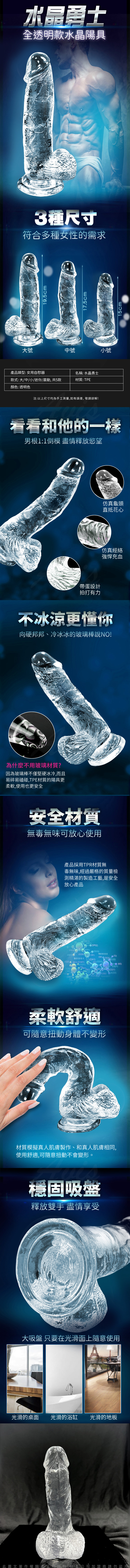 水晶勇士 仿真陽具老二按摩棒-透明-中款