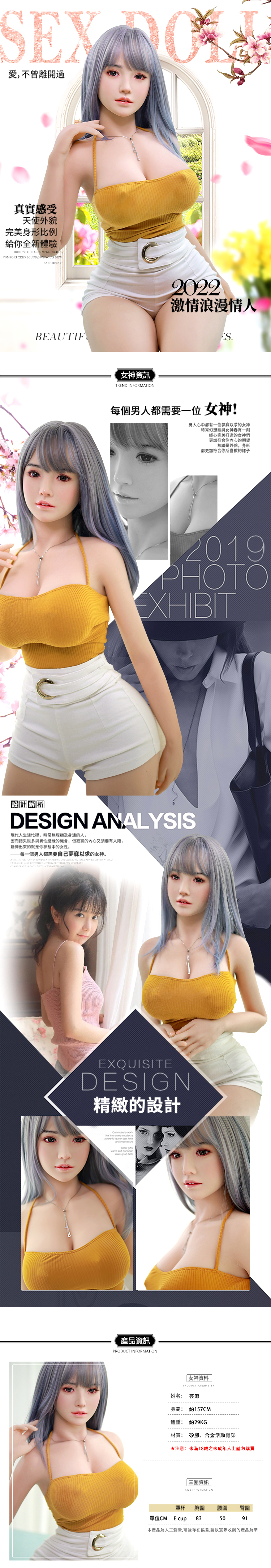 JYDOLL|矽膠實體真人娃娃|芸淑157cm 大胸款 假髮