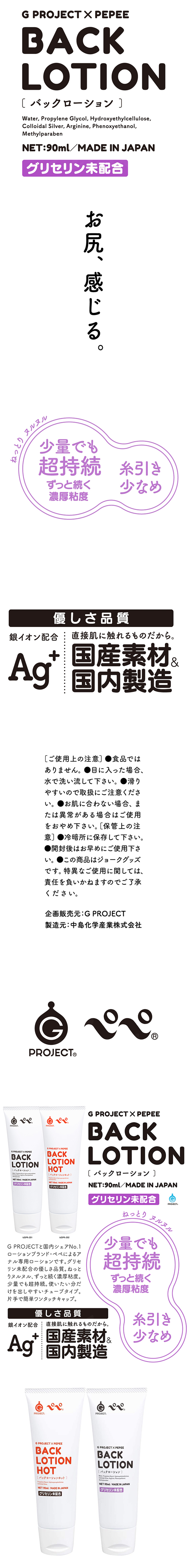 後庭、有感覺。由G PROJECT和日本國內市場占有率最高的潤滑油品牌Pepe聯手打造的後庭專用潤滑液。