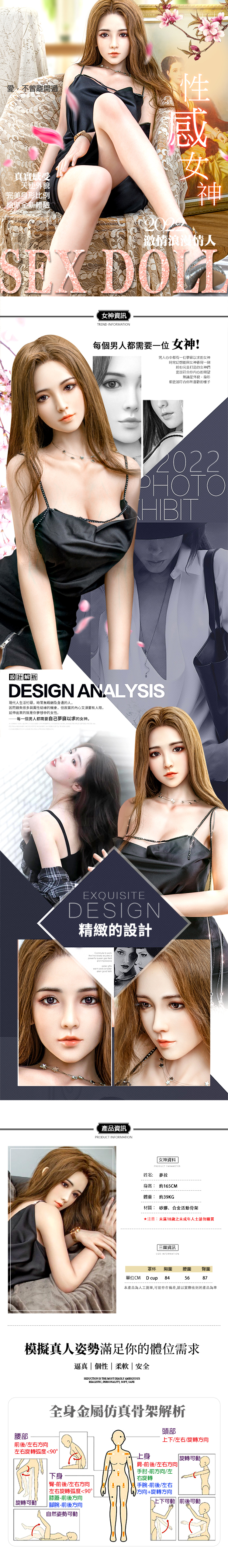 特色說明超擬真165cm真人矽膠娃娃3S級仿真皮膚塗層全面升級果凍胸,給你柔軟的舒適感受免費升級可站立款,解鎖多樣姿勢