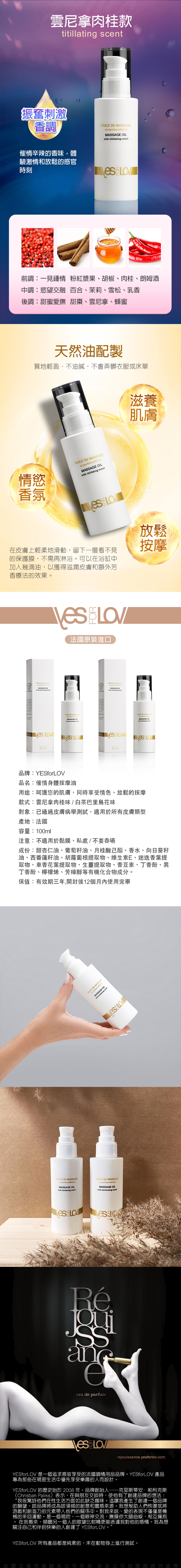 產品名稱:YESforLOV|催情按摩油|雲尼拿肉桂味 100ml